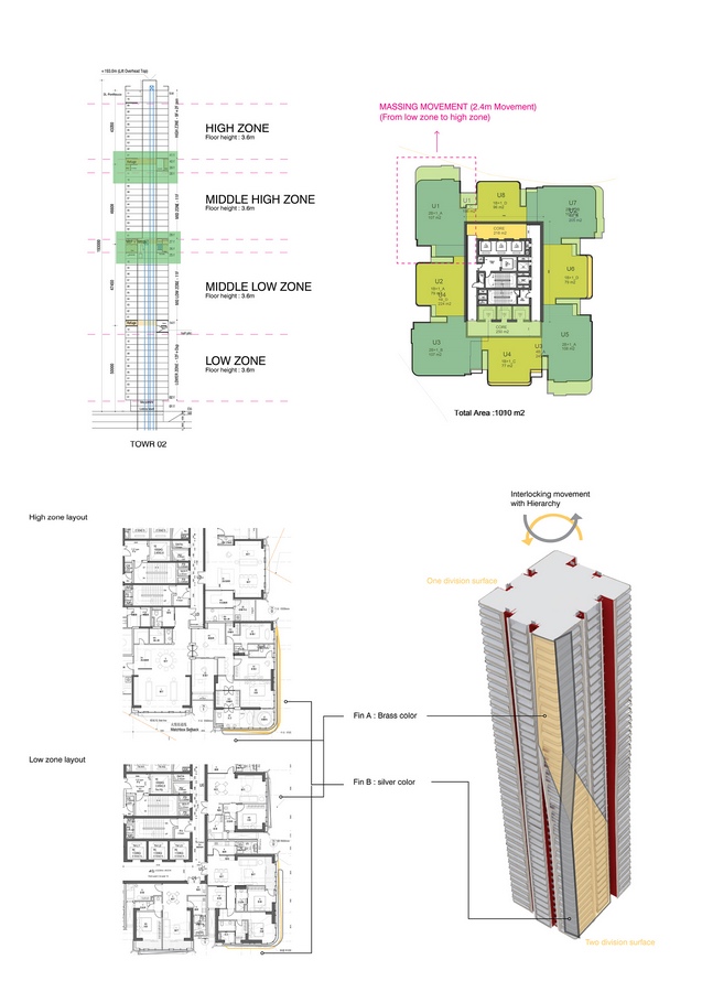 Spanning two plots, the development features five residential towers ranging from 16 to 51 storeys, comprising a total of 1,046 units. The project offers a range of healthy amenities, including 10 clubhouses, an elevated running track, extensive courtyards, playgrounds, sky and roof gardens, below- and above-ground parking, and lush green landscapes.