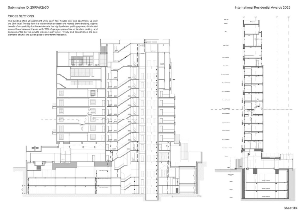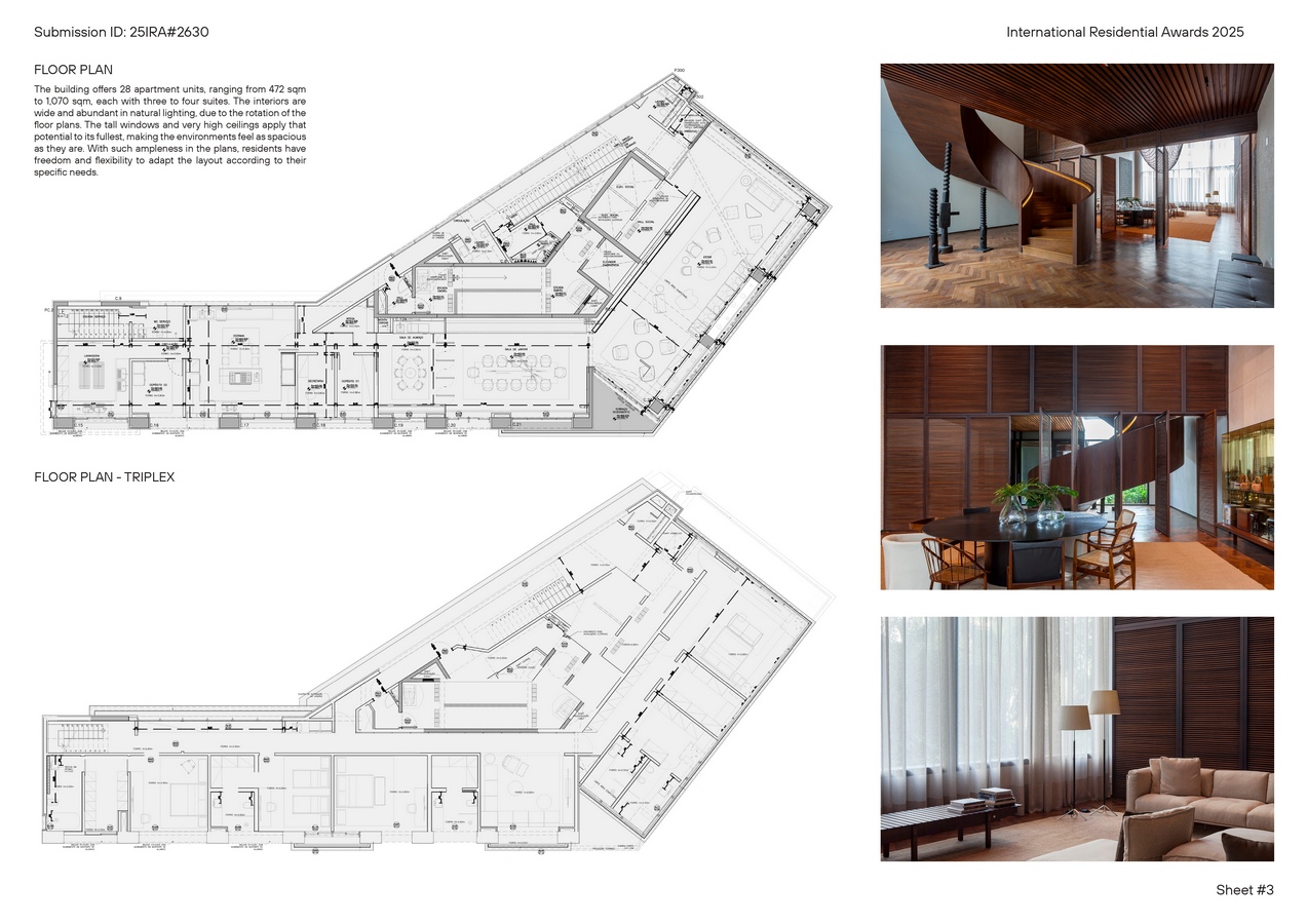 PSA Arquitetura: Winner of International Residential Architecture Awards 2025. Trees take center stage in this development, which blends contemporary architecture with a cosmopolitan atmosphere. Located in São Paulo’s western district, Arbórea Itaim seeks to bring nature closer to the residents of its 28 apartment units, all ranging from 472 m2 to 1,070 m2, each with three to four suites. A defining feature lies in the innovative rotation of the floor plans, ensuring unobstructed, lasting views toward Parque do Povo, Marginal Pinheiros, and the Itaim neighborhood. This strategy amplifies natural light while safeguarding vistas from potential future obstructions, a highly valued asset for the firm’s distinguished high-end clientele.