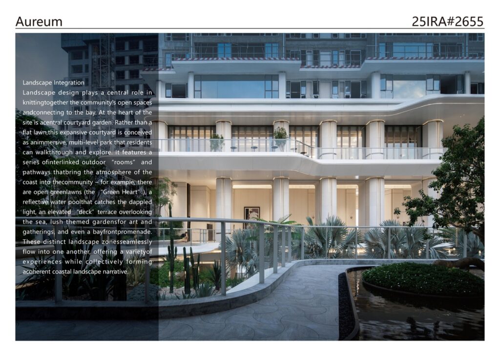 Aureum – Nanhai No.3 Courtyard illustrates a contemporary approach to coastal residential design that prioritizes spatial clarity and integration over stylistic ornament. By thoughtfully blending architecture, landscape, and amenities, the project achieves a harmonious environment that is both urban and resort-like. The site planning decisions – such as preserving a central open axis and keeping a low building density (Floor Area Ratio ~2.0) – have yielded a lush, park-like setting rare for a city-center development. This not only enhances the quality of life for residents, but also contributes to the public realm by maintaining visual openness and points of connection to the waterfront. The project’s curving white buildings and terraced gardens now form a distinctive yet context-sensitive landmark along Haikou Bay, marking the last piece of the bayfront with a design that embraces the sea views instead of walling them off.