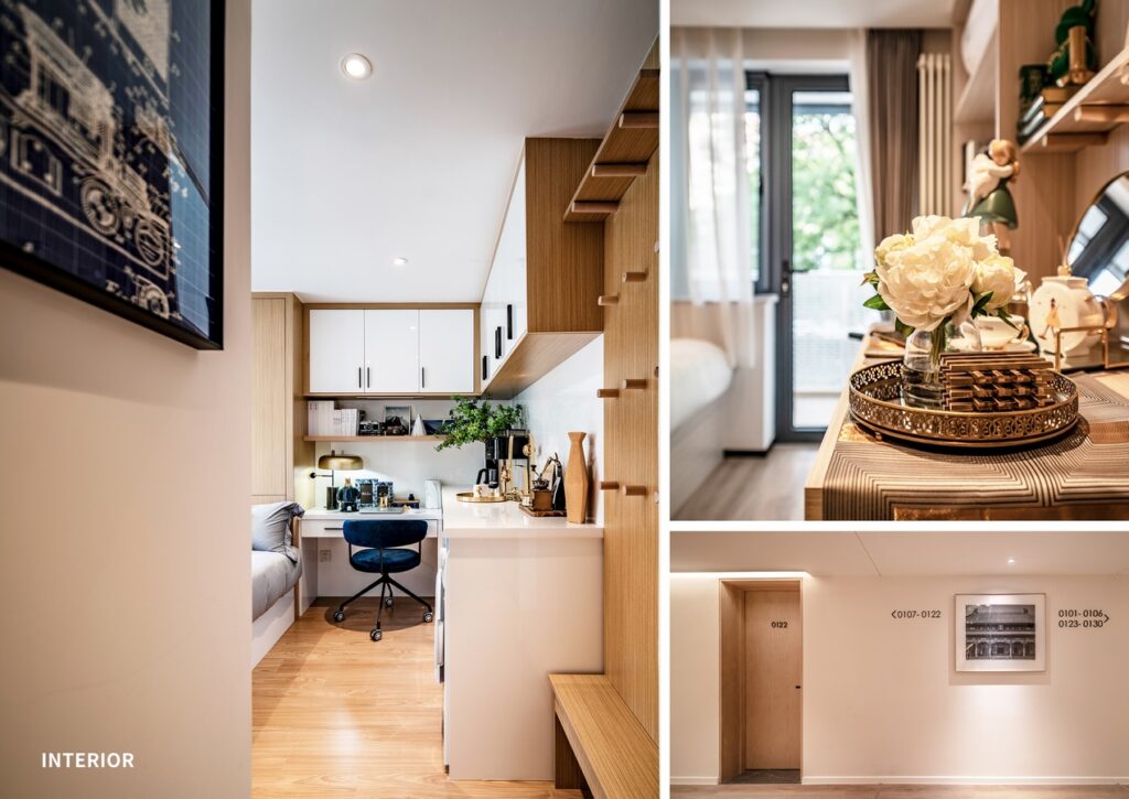 To align with the serene and harmonious vibes of the current district, the concept of light design is proposed, aiming to reduce the level of design intervention, adding only an apartment lobby and an elevator hall within the inner courtyard. This not only satisfies the daily needs of residents, but also allows old and new elements to collide and interact with each other.