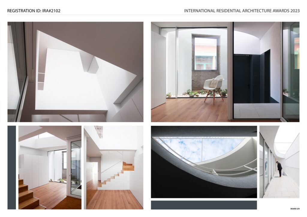 A2OFFICE: Winner of International Residential Architecture Awards 2023. The architectural project for this house was born simultaneously from a void and from a dance: the unbuilt space of the patio separates and unites the two volumes that make up the intervention and that seem to want to communicate through a dance.