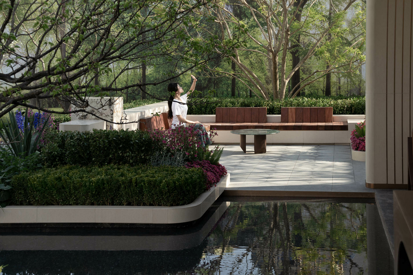 A completely new sensory experience of returning home. Stepping onto the path home through the city living room, one can enjoy a tranquil retreat within a boundless space, seamlessly blending urban tranquility with the vibrancy of city life. With each step, the scenery changes, bidding farewell to the city’s hustle and bustle and returning to the low-density urban garden luxury residence characterized by technological and ecological aesthetics.