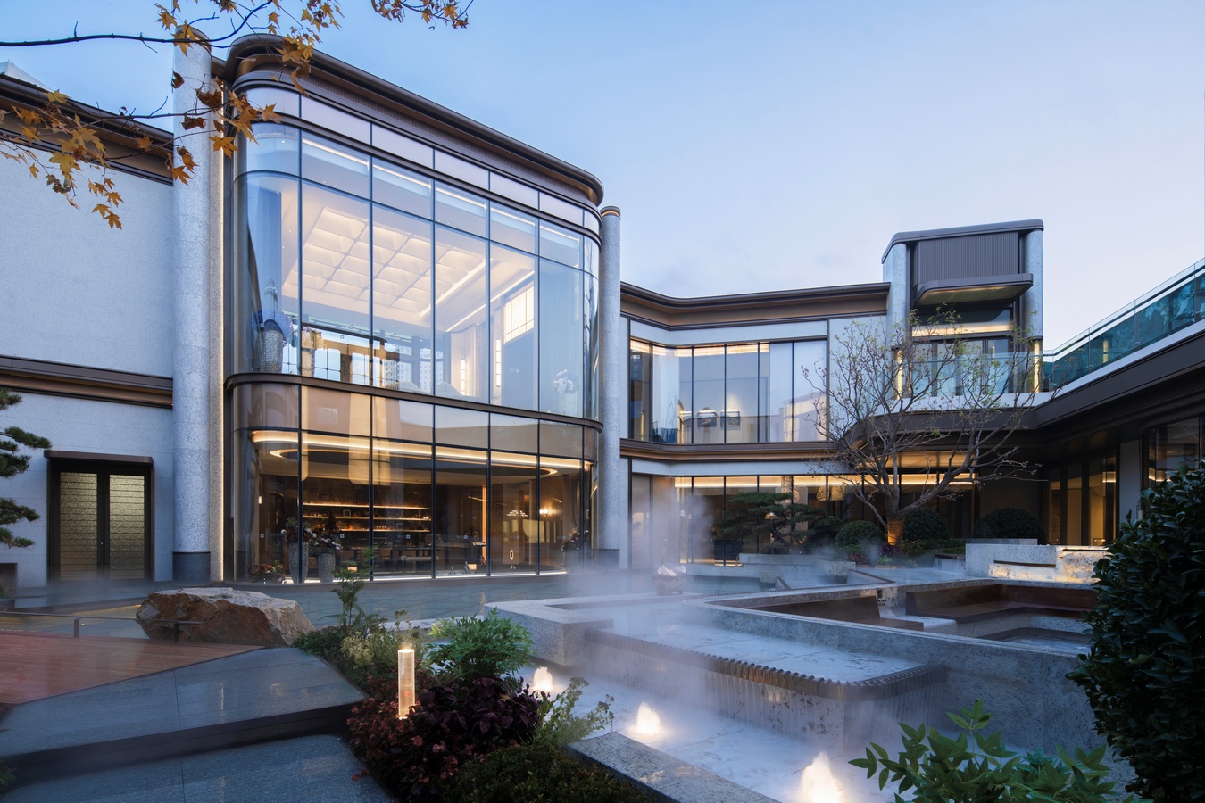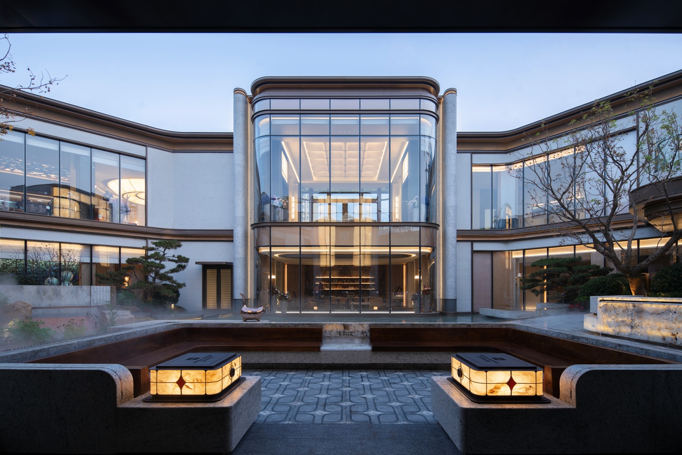 The project also features a high-end sunken courtyard clubhouse, incorporating luxury hotel concepts and meticulously planned multi-dimensional functional spaces, including a gym, yoga room, chess and card room, and tea room for meetings. The project adopts a flowing, light-curved facade design, avoiding the cluttered lines of traditional architecture. Instead, it draws inspiration from the meandering Yellow River and the vastness of the sky, creating a pioneering, curved facade aesthetic that exudes elegance and sophistication in the urban landscape. Furthermore, the project delves into the cultural essence of the “Eight Scenic Spots of Lanzhou,” creating a uniquely secluded and luxurious forest retreat exclusive to Lanzhou.