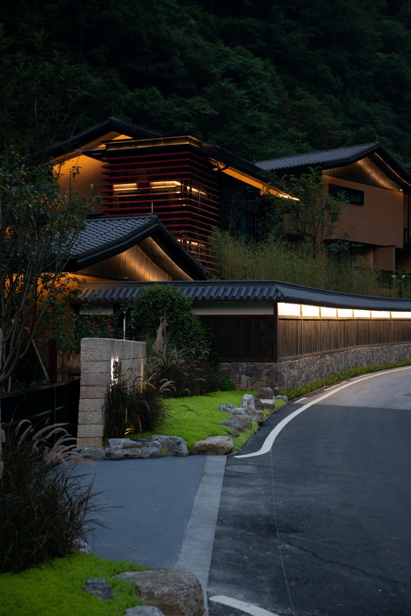 We shape light and shadow, space, and matter. The hotel building takes the form of a long strip based on the surrounding environment, and is built in the form of high and low scattered fields, village houses, small bridges, and flowing water along the mountains and streams, creating a pure, peaceful, and profound spatial feeling. The green tiles and white walls, the quaint and elegant entrance first catches the eye. There are lush pine and cypress trees planted at the entrance, and the sunlight shines on the wall through the fine cracks of the leaves, swaying gracefully. The handmade matte hammer wood grain copper plates decorated everywhere bring a warm texture to clean spaces. The bathroom is wrapped in black basalt and combined with minimalist techniques and natural elements, forming a seamless connection between the floor and walls with the same color and texture, achieving ultimate unity. The overall style of the guest room area uses warm wood grain finish and warm straw paint, and the cotton and linen bedding together to create a warm and comfortable home atmosphere. Most of the space here extends to the nature in the form of terraces or courtyards. We construct a super natural landscape through a large area of french window, which connects the interior and the external environment unreservedly, blurs the boundaries, and grows naturally. With simple design techniques and dynamic spatial layout, we introduce the natural landscape, narrow the distance between people and nature, and build an artistic and free space.
