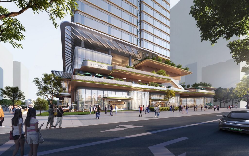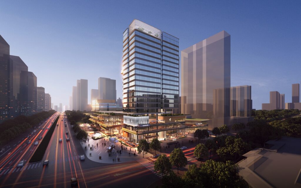 The project adopts a three-dimensional functional organization model: three underground levels are systematically developed, with B1 planned for commercial functions to unlock underground value, while B2–B3 integrate parking and equipment systems in a compact manner. Above ground, 19 floors vertically layer commercial spaces, hotel facilities, and serviced apartments, shaping a high-efficiency paradigm of land use. Through complementary functions and interconnected circulation, the development realizes the spatial expression of a “one-stop” urban lifestyle container.