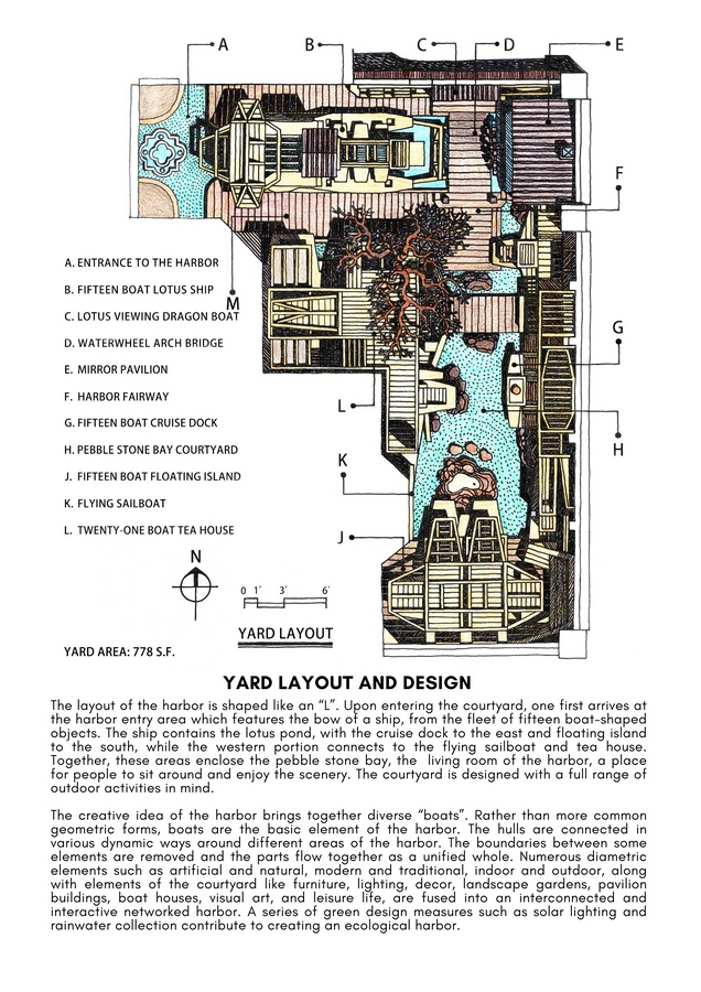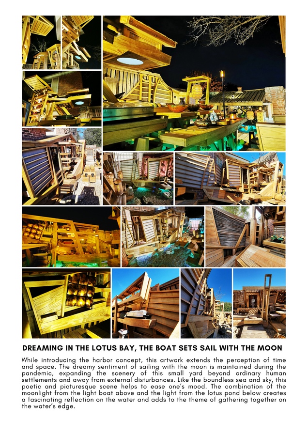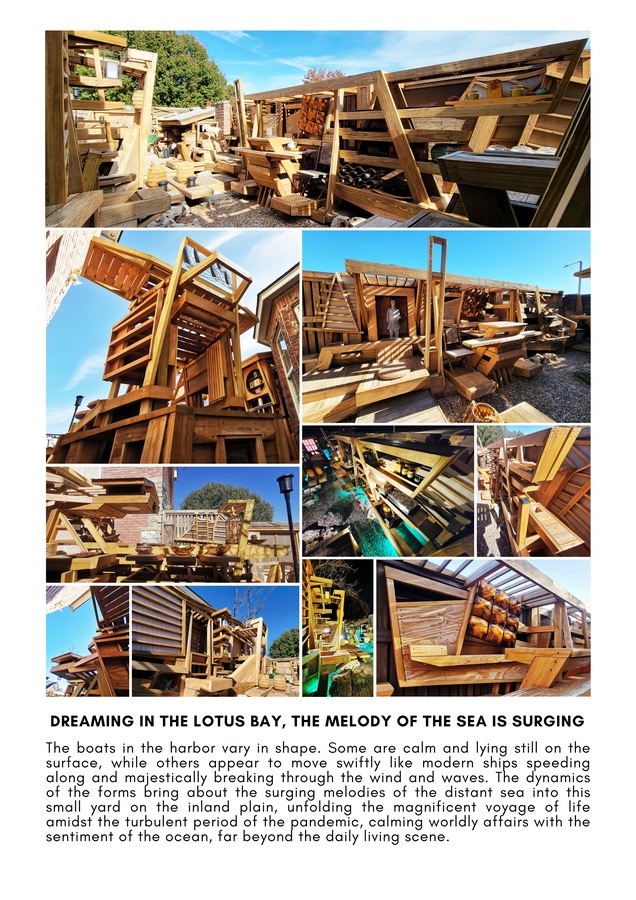 The harbor concept brings together a grand yet intimate scene, where nearly every element of the courtyard embodies the essence of boats, evoking the rhythmic swells of a distant sea within this small inland space. Sixty-eight sculptural “boats” are docked in lively arrangements, forming a family haven and serving as a graceful tribute to society’s resilience during the pandemic. Through the lens of a small courtyard, the project conveys a broader social narrative.