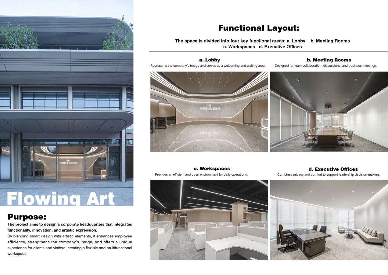 Kris Lin International Design: Winner of World Design Awards 2025. A. Purpose-The project aims to design a corporate headquarters that integrates functionality, innovation, and artistic expression. By blending smart design with artistic elements, it enhances employee efficiency, strengthens the company’s image, and offers a unique experience for clients and visitors, creating a flexible and multifunctional workspace.