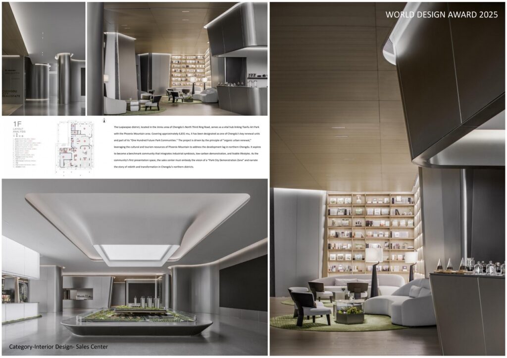 CSD.DESIGN & Mill Interior Art Design: Winner of World Design Awards 2025. The Luqiaoqiao district, located in the Jinniu area of Chengdu’s North Third Ring Road, serves as a vital hub linking Tianfu Art Park with the Phoenix Mountain area. Covering approximately 6,831 mu, it has been designated as one of Chengdu’s key renewal units and part of its “One Hundred Future Park Communities.” The project is driven by the principle of “organic urban renewal,” leveraging the cultural and tourism resources of Phoenix Mountain to address the development lag in northern Chengdu. It aspires to become a benchmark community that integrates industrial symbiosis, low-carbon demonstration, and livable lifestyles. As the community’s first presentation space, the sales center must embody the vision of a “Park City Demonstration Zone” and narrate the story of rebirth and transformation in Chengdu’s northern districts.