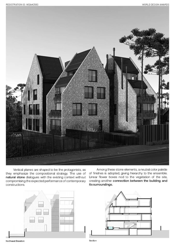 OSPA Arquitetura & Urbanismo: Winner of World Design Awards 2025. Located in a bucolic neighborhood with traditional architecture, the volume of the building aims to relate to its surroundings without losing its contemporary character.