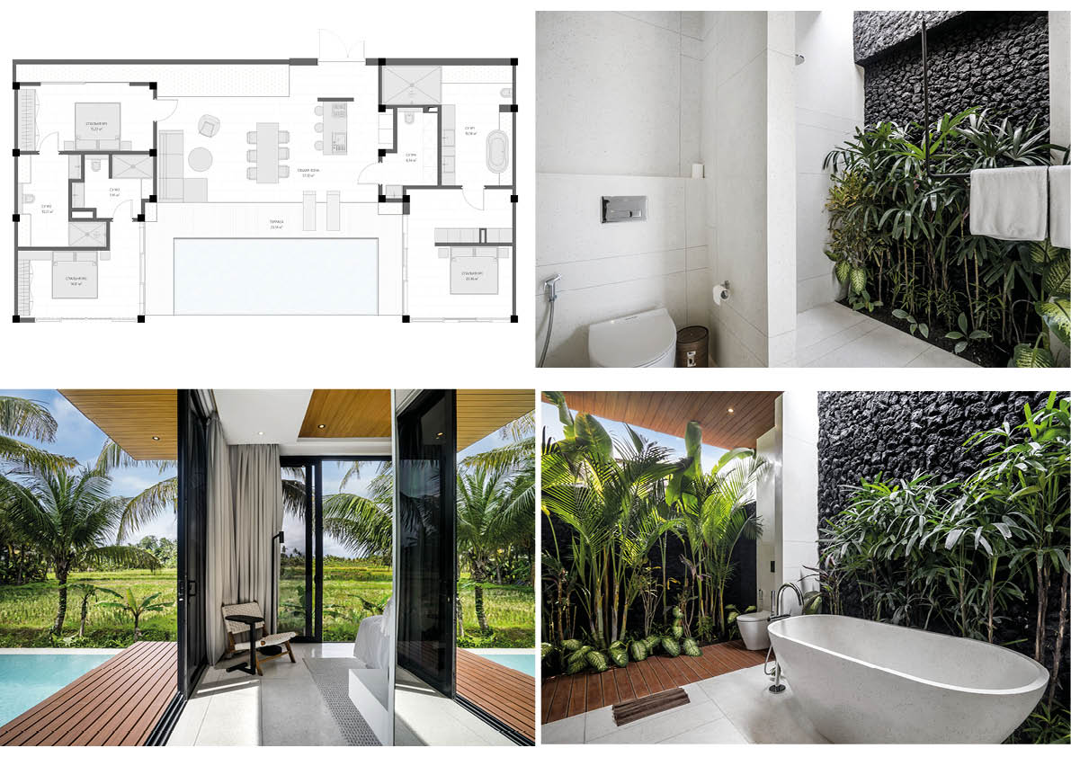Bali Investments: Winner of Architect of The Year Awards 2023. We offer a unique solution, ideal for relaxation and recreation. Villas are based on the concept of harmony with nature. There are all extra features that help visitors feel satisfied during their stay. An amazing effect of peace and silence is achieved thanks to a really good location. Beautiful rice fields surround the villas and create stunning views. The idea that also makes the objects so interesting is the integration of green areas and absence of transitions between territory inside and outside. A lot of plants and open space fill visitors with a sense of freedom and natural lightness.
