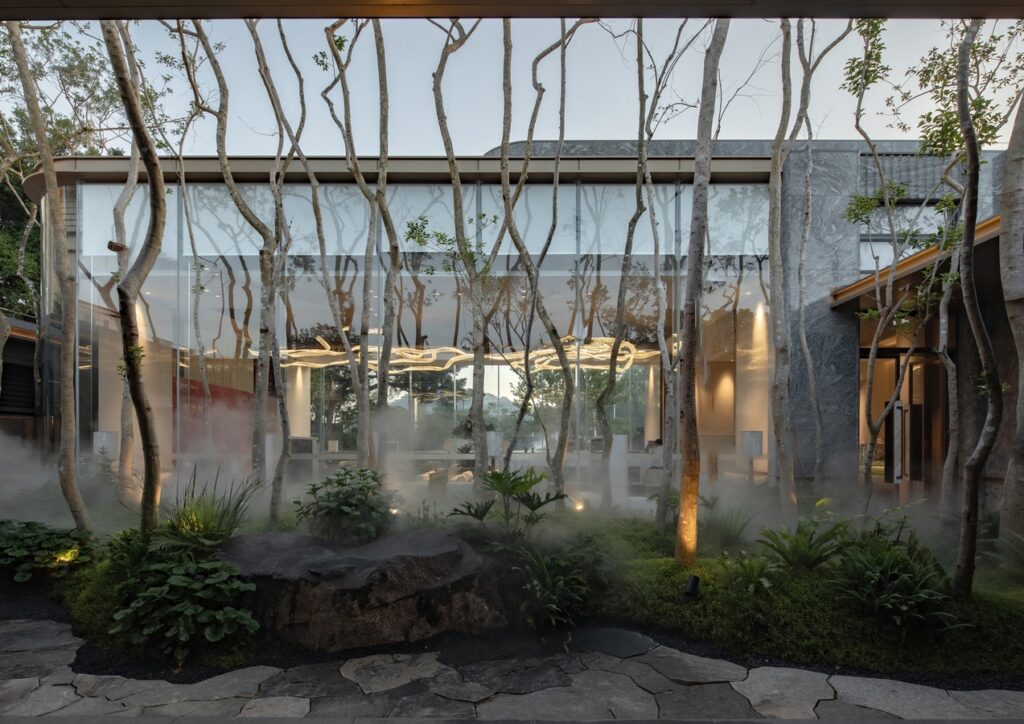 The demonstration area is adorned with luxurious stones, each carefully selected. Meanwhile, starting from a deconstructed vocabulary, we reinterpreted the concept of “surface”, combining blocks with various elements such as stone, metal, plants, and even light, and handcrafting them before naturally incorporating them into various scenes in the demonstration area.