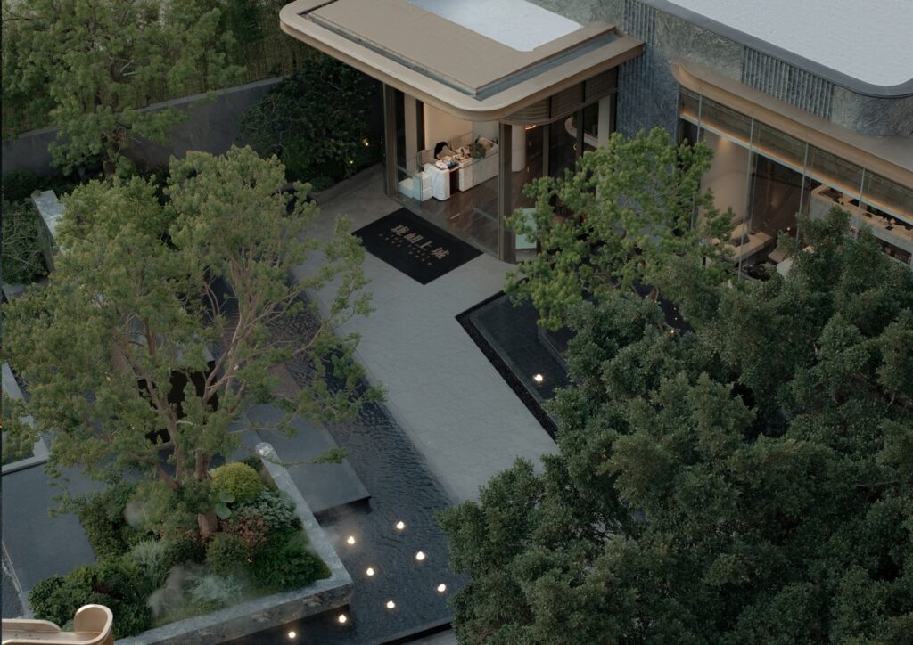 The natural extension of the essence of life comes from the endless flowing scenery that stretches as far as the eye can see. Walking through the interconnected courtyards, one can see the gleaming french windows that seem to have no boundaries. Looking down, one can see the pure mirror-like pool. Looking around, one can see the lush green trees interspersed on both sides. This enclosed and serene environment, where one can swim, feel, and observe, accompanied by the gurgling water, gradually brings out the poetic beauty of life.