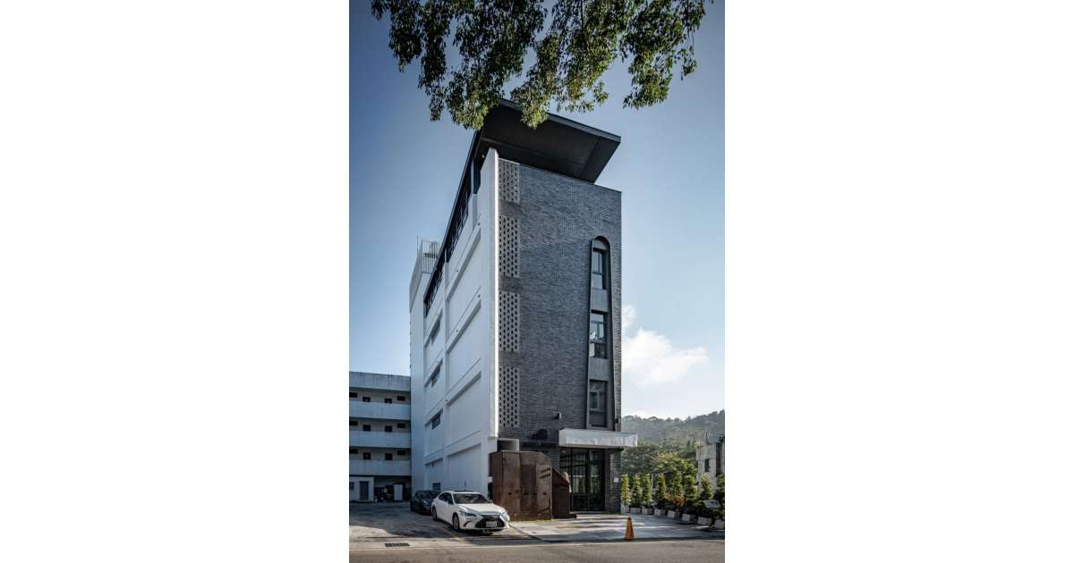 The structure is built with reinforced concrete, while the material palette is carefully curated to evoke depth and texture. Japanese reduction firing tiles and mosaic tiles create a rich, weathered patina, adding layers of character to the façade. Solid Japanese bricks are strategically placed on the exterior bathroom walls to allow natural light and ventilation to filter through while maintaining privacy. The roof is composed of steel-framed aluminum panels reinforcing the building’s structural integrity. At the entrance, the staircase sidewall is crafted from weathering steel and coated with a refined finish to form a signature logo wall which is precisely positioned to subtly obscure the views of passerbys as the owner descends the stairs, ensuring visual continuity and a harmonious spatial experience. This layered architectural envelope not only enhances the building’s depth but also establishes a tactile connection to the earth, reinforcing the impression of a structure organically emerging from the landscape.
