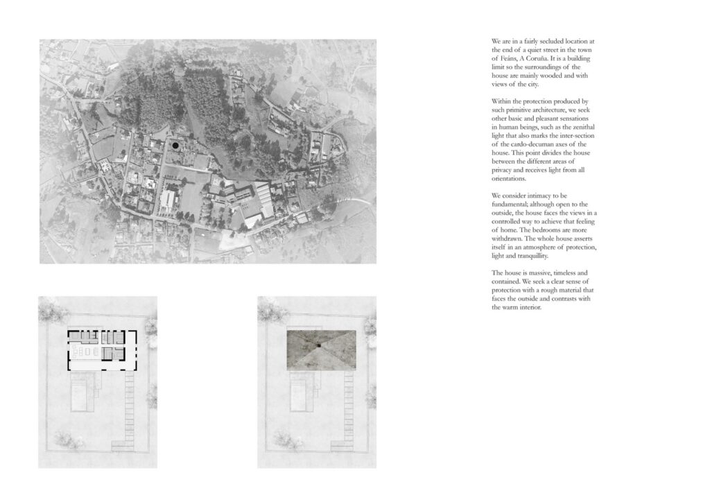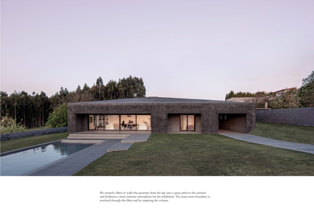 SEA Arquitectos: Winner of International Residential Architecture Awards 2023. We are in a fairly secluded location at the end of a quiet street in the town of Feáns, A Coruña. It is a building limit so the surroundings of the house are mainly wooded and with views of the city.
