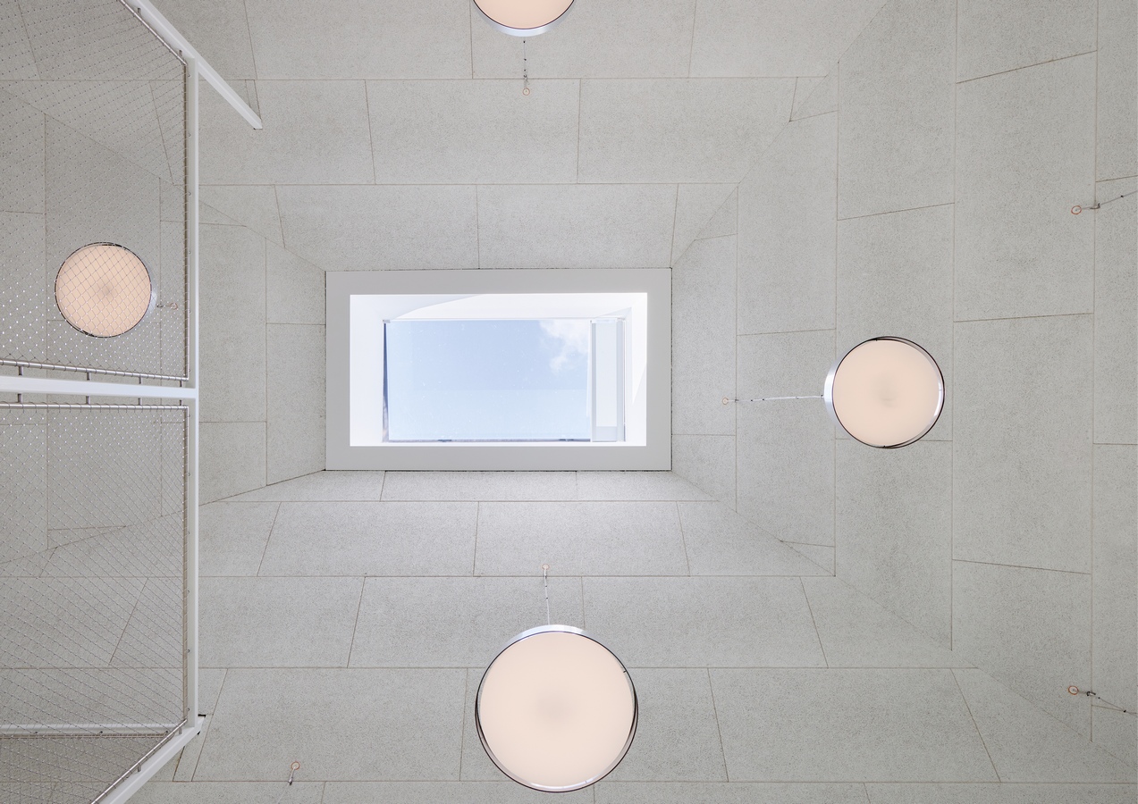 The three group rooms open up to the play garden with generous glazing and have direct access to the outside. A continuous canopy provides shade and offers play areas protected from the weather. The garden combines classic play equipment with tree trunks and boulders that invite children to explore and play creatively. From the garden, the house appears to be single storey; the striking pyramid roofs stand out as a distinctive design element.