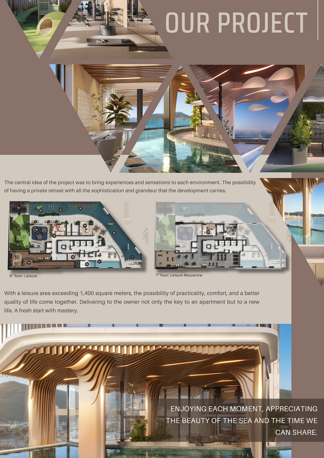 This project was an opportunity to create a visual narrative, capturing the essence of the place and evoking feelings in observers throughout the 32 floors of this impressive development. Featuring commercial space, spacious parking with three spaces per apartment, and a leisure area of over 1,400 square meters to enjoy every moment with what/who truly matters.
