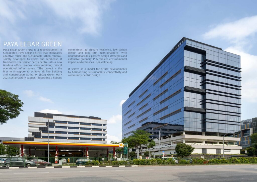 DP Architects: Winner of World Design Awards 2025. Located in Singapore’s fast-evolving Paya Lebar District Centre, Paya Lebar Green (PLG) is a forward-looking redevelopment that exemplifies the principles of adaptive reuse and sustainable urban regeneration. Jointly developed by Certis and Lendlease, the project transforms the former Certis Centre into a vibrant mixed-use gateway while retaining critical operational infrastructure. Comprising the extensive retrofit of an existing block (PLG North) and the construction of a new Grade-A office building (PLG South), Paya Lebar Green seeks to rejuvenate the precinct by introducing a future-ready model for green, resilient and community-oriented development.