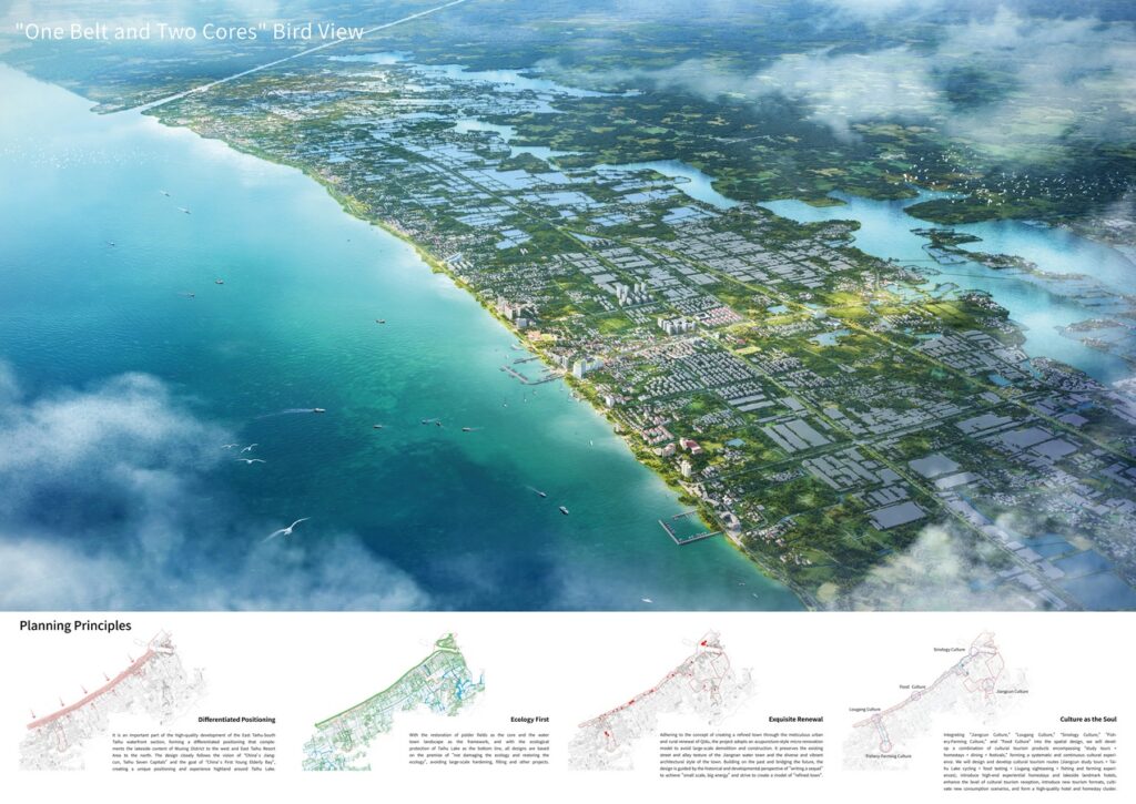 Other principles also support this core: “Differentiated Positioning” creates a unique identity by complementing nearby waterfront areas, focusing on “China’s Jiangcun, Qidu by Taihu Lake” and “China’s First YOUNG Elderly Bay”; “Ecology First” prioritizes Taihu’s ecological protection, and avoids large-scale hardening projects; “Culture as the Soul” integrates Jiangcun, Lougang, Sinology, fishery-farming and food cultures into design, developing ” tourism + catering + festival + study” products and tourism routes.