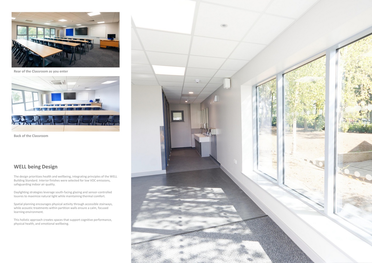 - Innovation: Advanced construction methodologies and sustainable technologies support the school’s Net Zero strategy and WELL objectives.