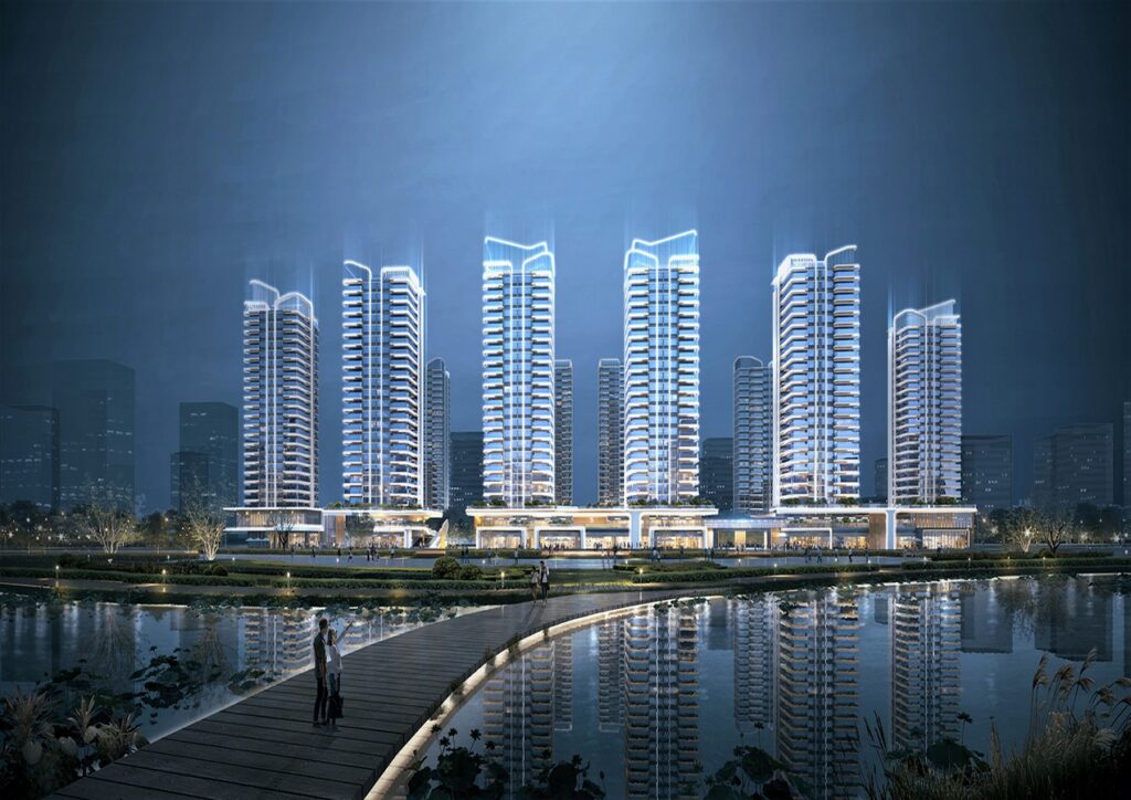 REMAC TY: Winner of International Residential Architecture Awards 2025. The project sits gracefully on the eastern side of Donghua South Road, Longjiang Town, Shunde District, boasting a land area approximately 52,000 square meters and a floor area around 200,000 square meters. The extraordinary project plot lies conveniently near the city center, adjacent to the enchanting Longjiang landscape belt, and the southeast side linked to Longhu Park. As the exciting startup area for Longjiang New Town planning, it plays a leading and radiant role. It begins from Longhu Lake and seamlessly fuses into the city with water. It enjoys a unique waterfront green space, crafting a compelling pro-water landscape and shaping the alluring gateway of Longjiang New Town.