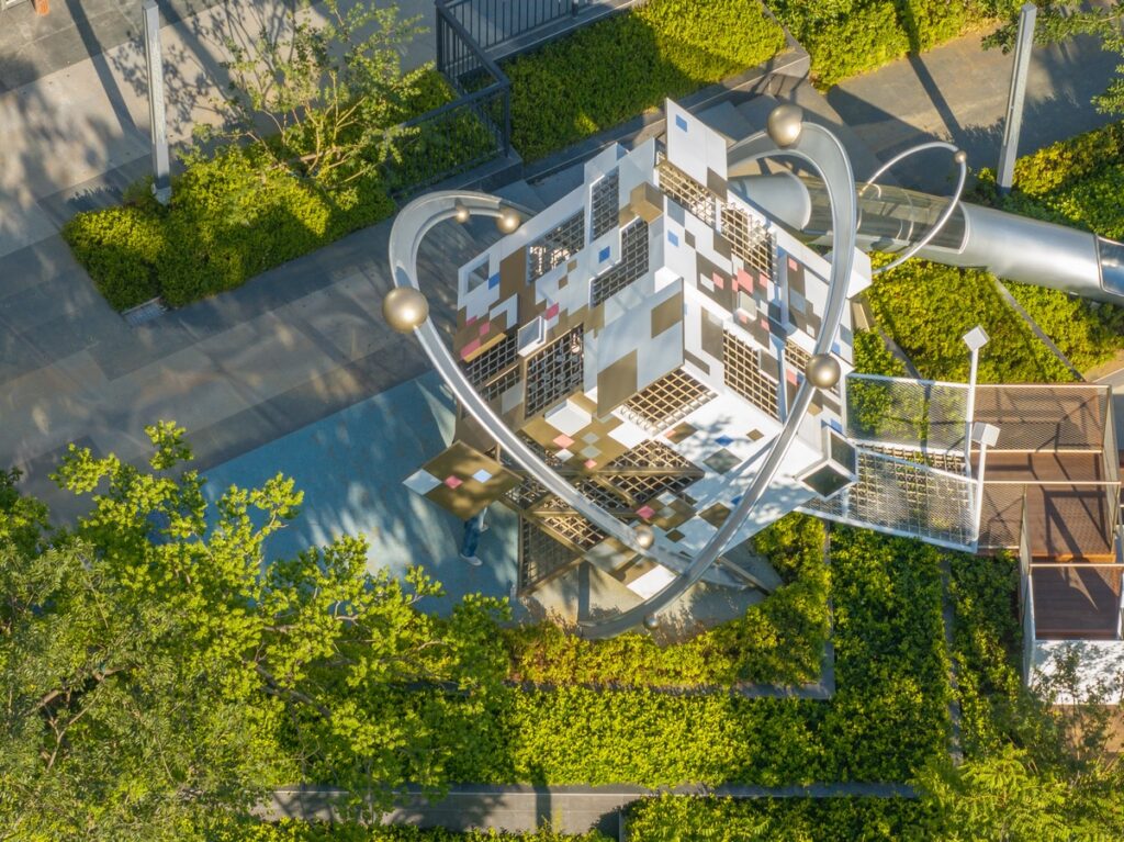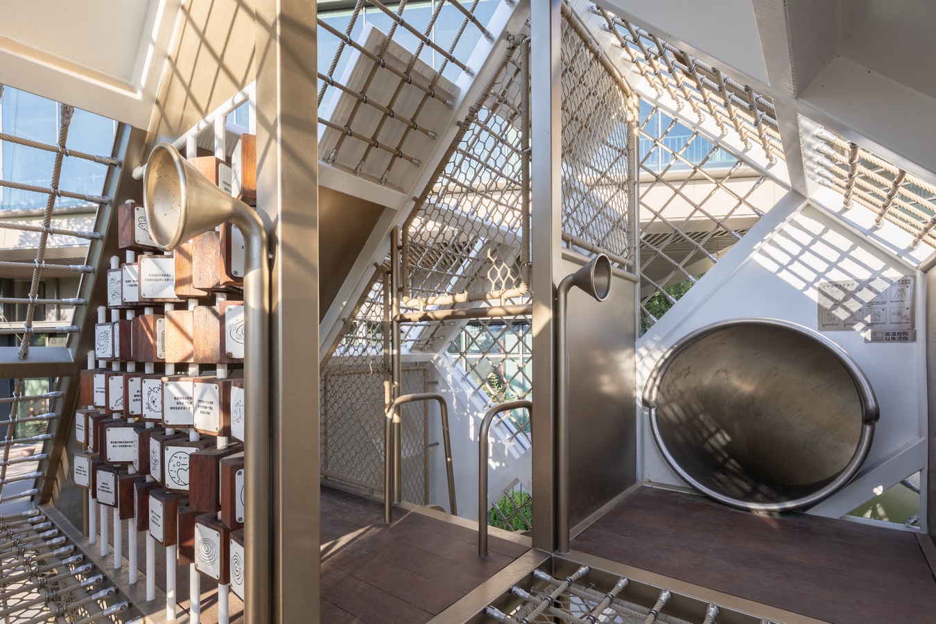 As New Horizons flies through the Kuiper Belt at breakneck speed, it is affected by the resonance of the celestial orbits, which gradually mosaics the vehicle and scatters mosaic modules along its trajectory, making it a pixelated world that inspires children to explore. As the main instrument of the Pixel World, New Horizons’ exterior texture and ring shape is modelled on the celestial belt. The interior is filled with composite climbing devices that blend with the undulating terrain to inspire children’s imaginations and add more fun and enjoyment to the little explorers’ adventures, creating an immersive journey of interstellar discovery.