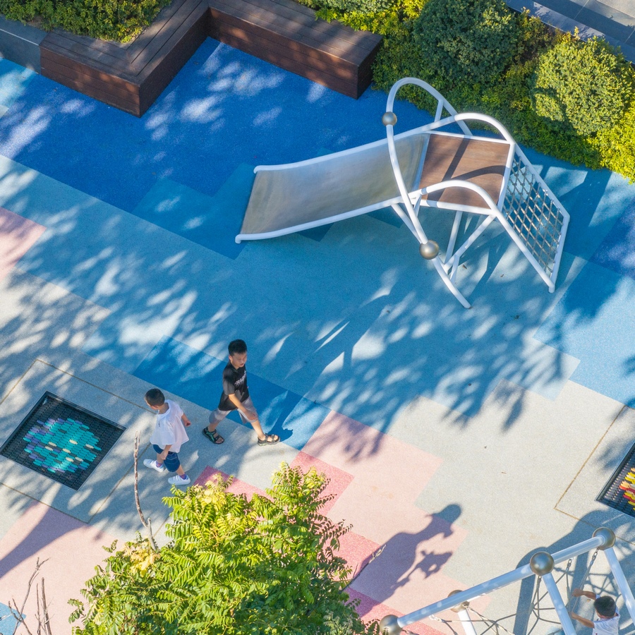 The project is inspired by the Kuiper Belt, the most mysterious region in our solar system. Located in the outer reaches of the solar system, it is a celestial belt of thousands of asteroids and the place where asteroids and comets are born in the solar system. Just as the Kuiper Belt contains a multitude of tiny celestial bodies (fragments of protoplanetary discs circling the sun), the venue uses the Kuiper Belt as a story line to form a fun, lively and interactive children’s discovery playground. The whole site is themed with starlight + Rubik’s Cube, and consists of different functional areas such as flying machines, climbing machines, ground explorations, small machines, and resting spaces, creating an artistic, romantic, interactive and fun neighbourhood scene and commercial atmosphere.