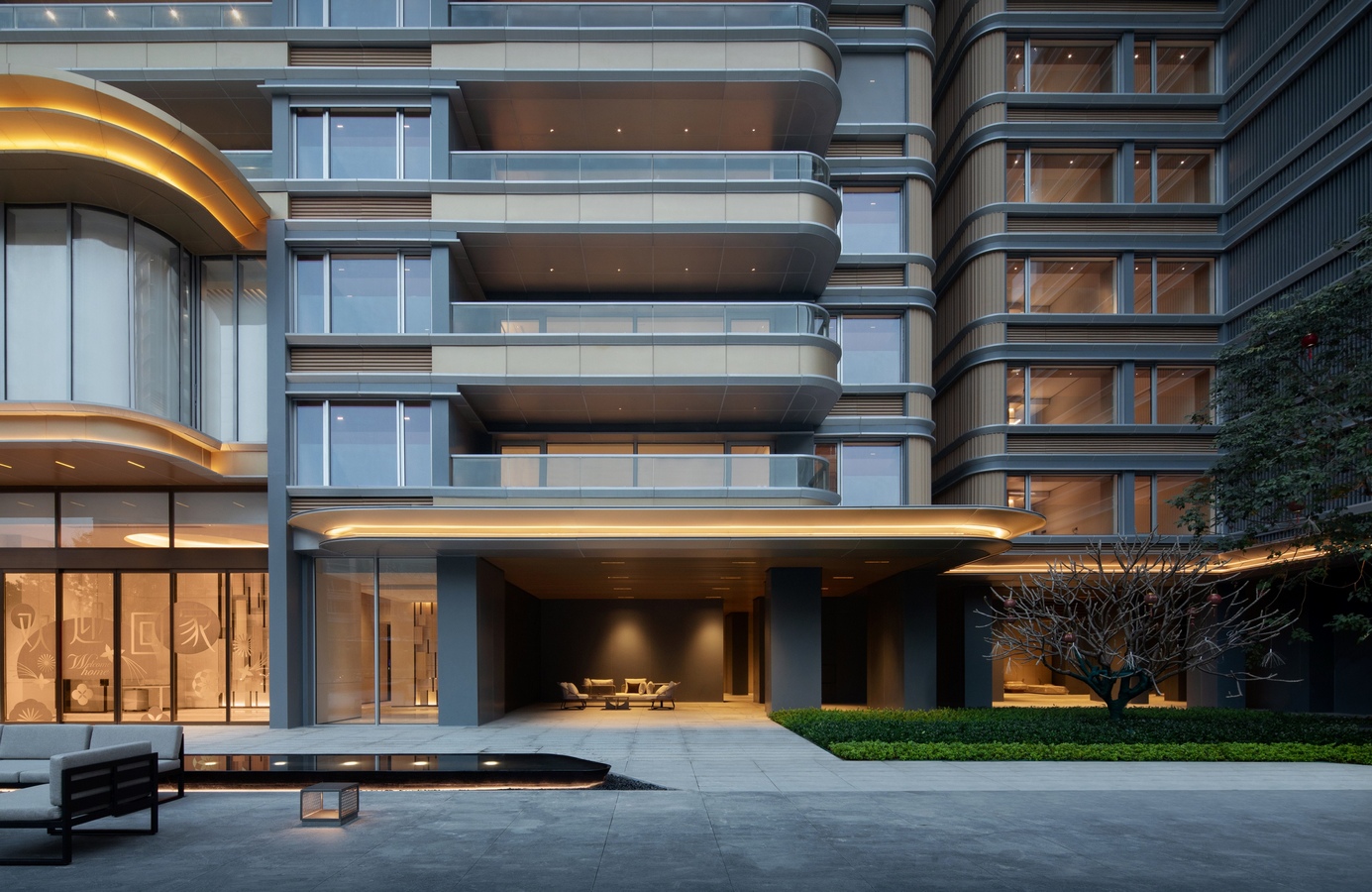 The building facade uses rounded corner design language to highlight the metal texture of the brand, and the integrated image provides a customized exclusive identity for the community. From the perspective of the road along the street, the well-defined architectural form, the carefully processed facade details and coherence allow the building to harmoniously integrate into the city.