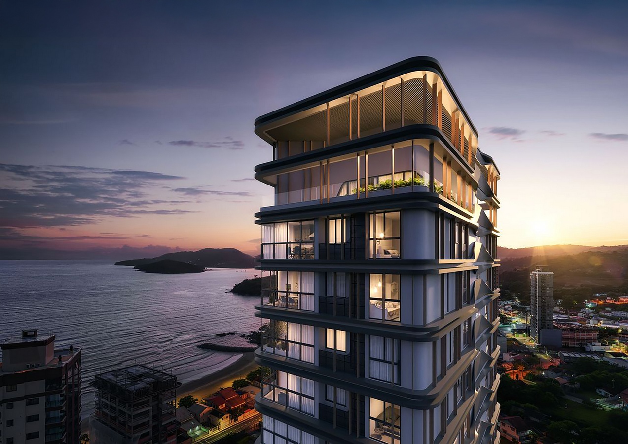 GM Selent: Winner of World Design Awards 2025. Inspired by the winds of Porto Belo, Ventus reflects lightness, movement, and a deep connection with nature. Its clean lines integrate the tower with the surroundings, while wind-sculpted forms create rhythm and fluidity. Standing 104 meters tall with 31 floors, it features 72 apartments with 2 and 3 suites (82 to 131 m²), all facing the sea. As the region’s first Rooftop Wellness, the project offers over 1,250 m² of leisure dedicated to well-being and a new way of living with sophistication and balance.