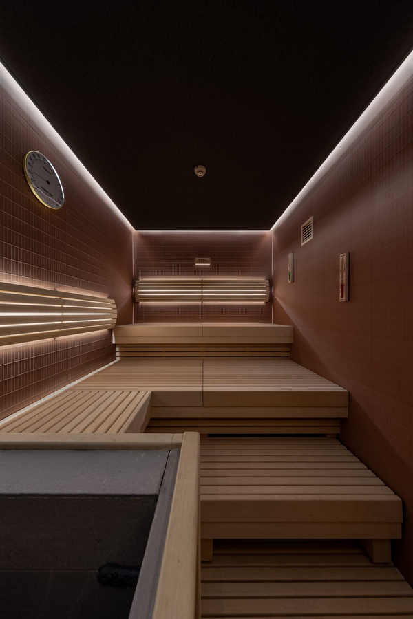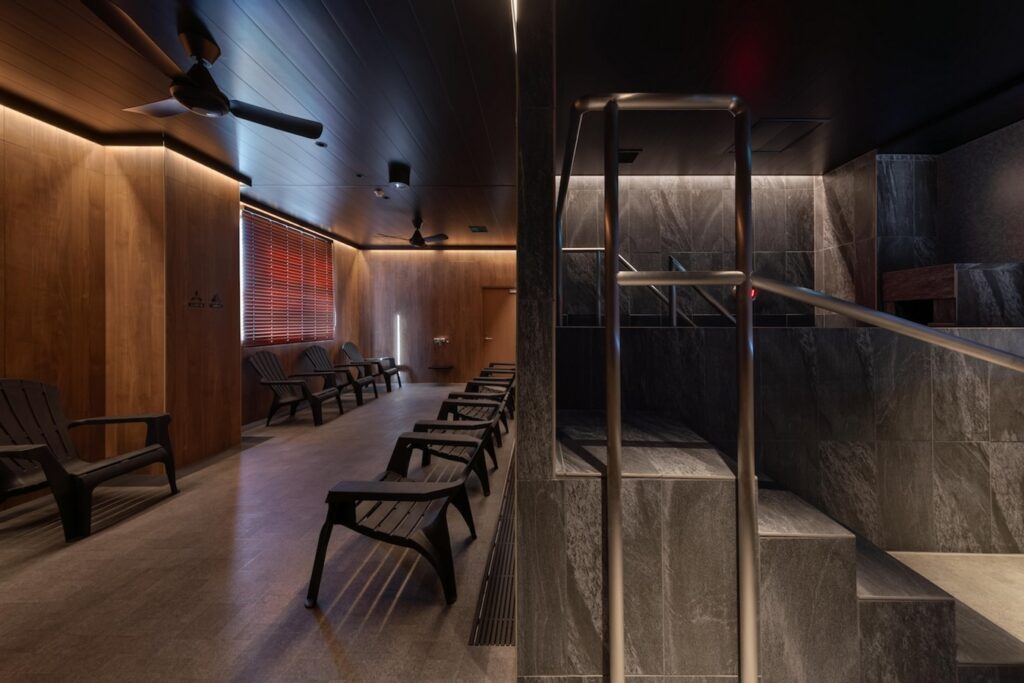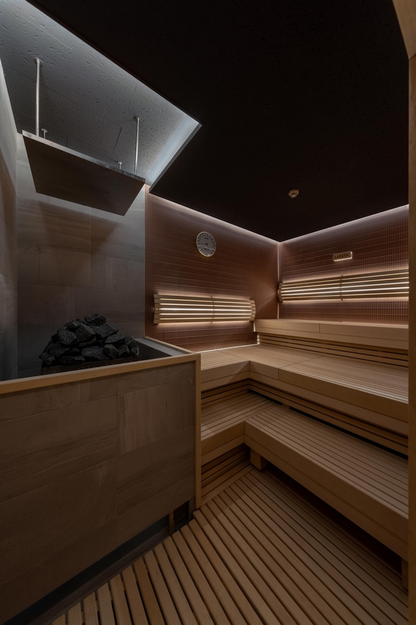 The highlight of this space is the futuristic sauna rooms in both the public and private areas. Other facilities include a 110cm-deep cold-water plunge pool, a shower area, changing rooms with powder areas, a relaxation space, and a bar. The relaxation space is lit only by indirect lighting, and the flickering light creates a fantastical atmosphere. The oriental-inspired bar is perfect for savoring the afterglow of your sauna. We researched all sauna facilities and created a space that surpasses them in functionality. This is a special space where you can escape the stress of everyday life and enjoy a moment of relaxation. Sauna facilities are complex systems of machinery, piping, air conditioning, etc., and they must be installed out of sight and planned to operate functionally, which is no easy feat in terms of design. A truly good space can only be achieved when functionality is achieved in addition to design.