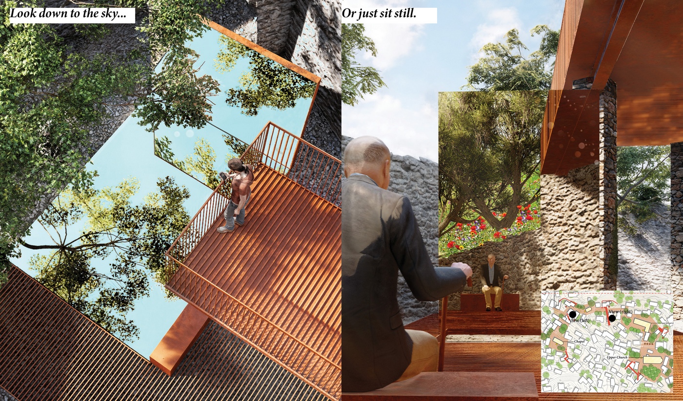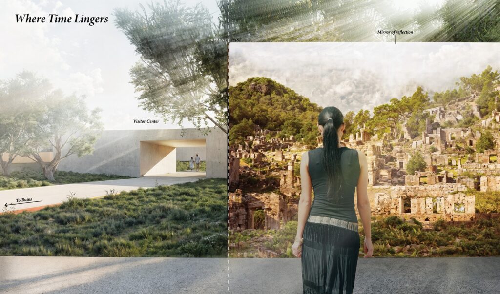 Sunlight, in fact, shapes the very logic of Kayaköy’s layout. Houses were carefully stepped down the slope to preserve each other’s access to light. This sensitivity inspired me to treat sunlight—an omnipresent yet intangible element—as a primary design material. Through creative use of reflective glasses, light is caught, refracted, and scattered, creating subtle transformations as the sun moves and seasons shift.